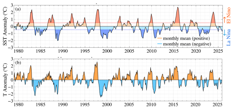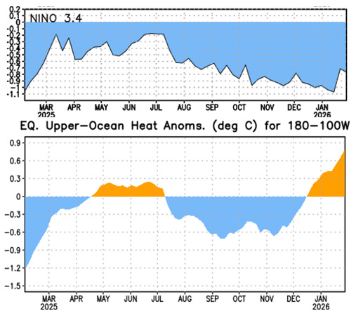 Fig. 7. RONI Nino3.4 and upper ocean heat anomaly to late January 2026.[14]