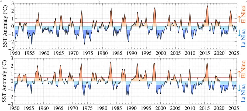 If the baseline readings for distinguishing whether neutral, El Nino or La Nina conditions prevail are increasing, then let us all use the science. BTW. In the current geopolitical chaos, unless there is a HUGE event ... the science will continue to be distant third fiddle to political and economic greed.